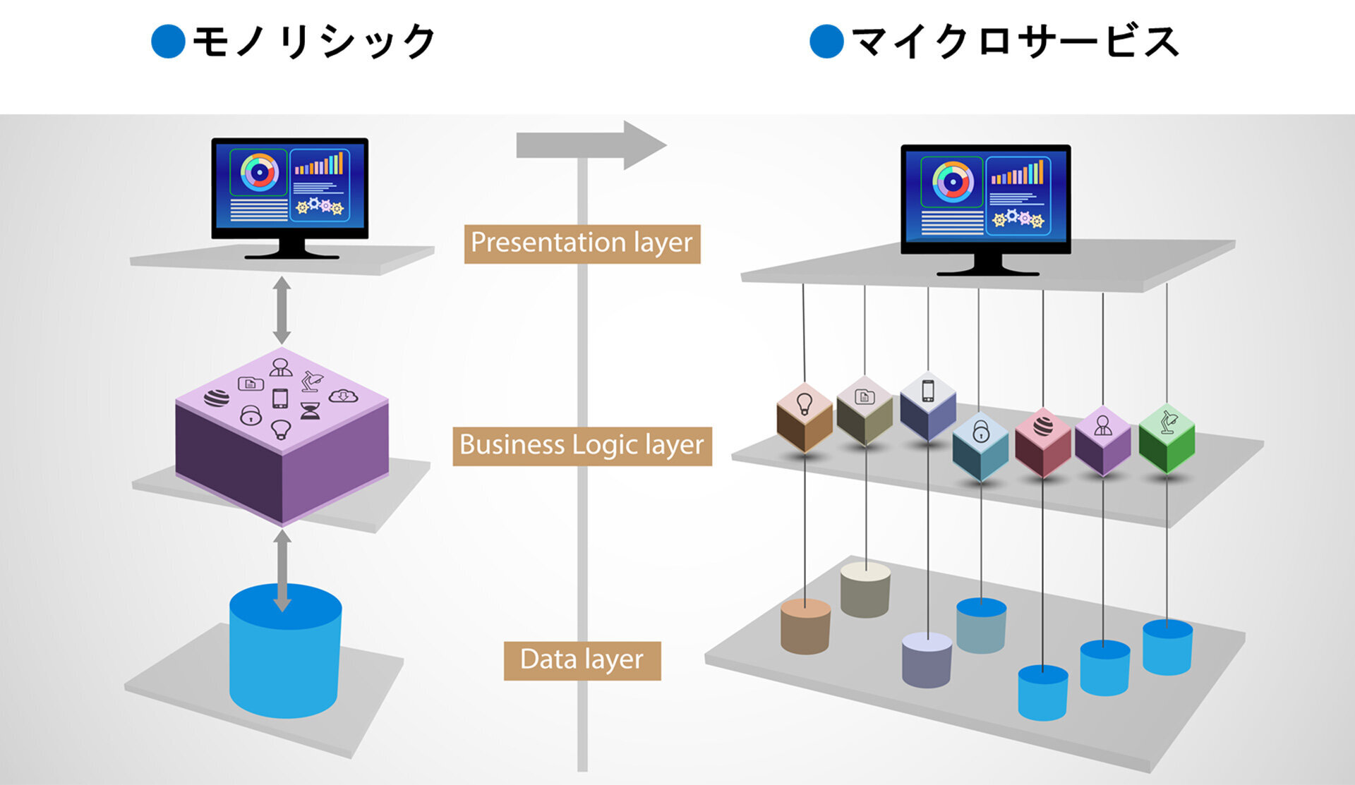 しかし、モノリシックなプログラムは、何かエラーが生じるとプログラム全体が停止してしまうため、デバッグに時間をかける必要があるほか、できるだけバグの発生を抑えるためプログラムのアップデート自体に慎重にならざるを得ない。
